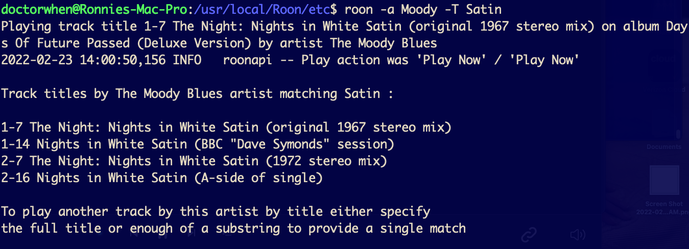 my typical use cases. Another feature of RoonCommandLine not easily found in